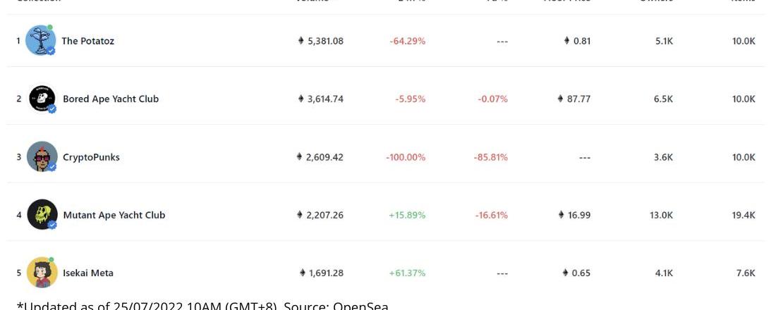 多得萬眾期待的免費鑄造NFT項目“ThePotatoz”,全球每周的NFT總銷售額在經歷了一個月的低潮后又重回2億美元大關。土豆NFT項目是由一家名為“9GAG”的Web2.0巨頭所發行的。對于多數亞洲讀者,尤其是華人圈來說,對9GAG應該感到相對陌生。這是一個以收集互聯網迷因而聞名的社交媒體網站。盡管該網站由香港人所創辦,但大部分用戶卻來自西方國家,其中瀏覽量最多的前3個國家分別是德國、美國及荷蘭,用戶占全球總數的23%以上。既然在西方的年輕網民中具有如此之大的影響力,那么9GAG的免費NFT項目能夠成功自然就不是什么奇跡了。9GAG的第一個主要NFT收藏系列名為“Memeland”,目前仍處于開發過程中。當該團隊還在開發其主要項目時,他們卻另外發行“YOUTHEREALMVP”NFT,而該NFT收藏的鑄造價為高昂的5.3ETH,總供應量也僅有420個。目前這MVPNFT的地板價為19ETH,收益可說非常可觀。