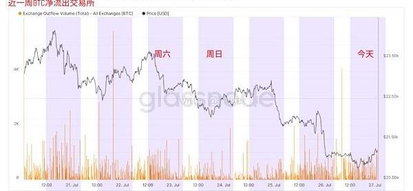 通過交易所的存量信息可以看到,目前庫存中的BTC是處于轉出趨勢的,這也符合前邊判斷的“抄底”思路,而從細節數據中可以發現,零點過后存量籌碼出現了小幅的上升,而從四點開始隨著谷歌和微軟的第二季度財報,BTC從交易所的提現開始增加。