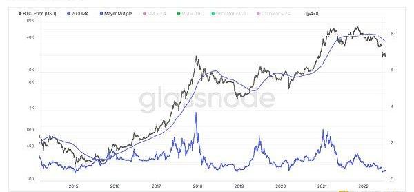 比特幣也達到了低于其200天趨勢的第二低偏差,僅次于2015年的熊市。