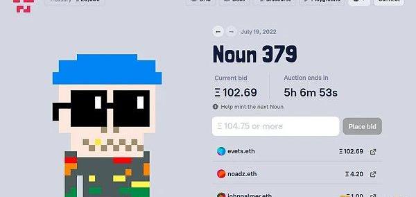 NounsDAO——“一個名詞,每天,永遠”是Nouns主要項目的口號。底層協議從特征庫中生成一個頭像,拍賣該頭像,并每天結算一次拍賣。