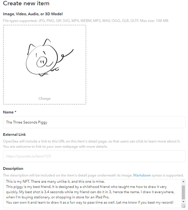 通過把它鑄造 (mint) 成 NFT,我們希望這個形象能夠在網上獲得更多關注。如果有一天三秒豬也能成為全網知名的梗圖形象,那就太好了。