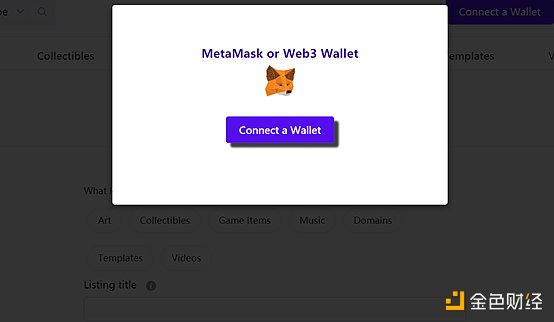 三、選擇創建并列出要出售的物品,諸如藝術品、游戲、音樂等。填寫你在創建的物品情況,諸如標題、介紹等,之后添加文件。(以下為金色財經記者創建的NFT介紹)