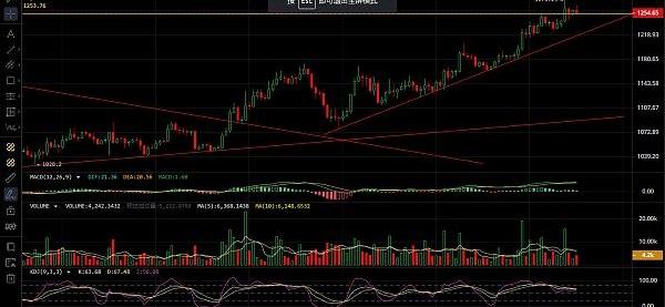 以太坊昨日回踩低位至1163附近,未能給到多單進場機會,隨后一路震蕩上行高位觸及1276一線承壓回落,目前幣價在1255一線震蕩,四小時圖來看,布林帶開口向上,MACD綠色量柱縮量,KDJ和RSI均有拐頭向下的趨勢,行情漲至上軌附近承壓回落,有回踩下方支撐的跡象,思路就是反彈高空為主,上方1280有效壓制未突破前了1260-1280做空,目標看1225-1200