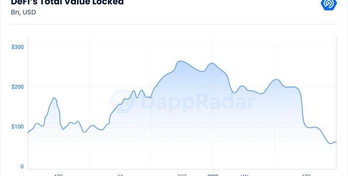 Terra崩潰對DeFi市場產生巨大影響,導致總鎖倉量跌至2021年初水平,本文撰寫時僅為700億美元左右,比2022年一季度末減少69%,比一年前下降33%。