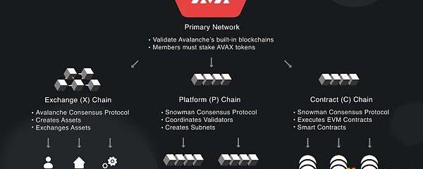 Avalanche的主網絡由三個區塊鏈組成——X、P和C鏈。每條鏈在維護Avalanche的完整性以及創建新資產或區塊鏈方面都有不同的用途。