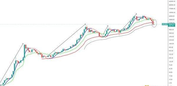 上月BTC最低插針至下方黑線位置止跌反彈,本月最低也未破黑線支撐,目前升至18000美金附近,上一次插針至黑線還在2020年3月,后面價格V反重新站上由藍轉紅的下滑趨勢線,啟動本輪牛市行情。再往前BTC從低位站上下滑紅色壓制線分別在2012、2015和2019年,然后經過一段時間的底部盤整,后面啟動2013、2016-2017和2019牛市行情,所以可以看出BTC一旦從低位重新站上,后面往往將展開新一輪牛市,而目前該壓制線還在高位,后面隨著時間將逐步下移,所以新一輪牛市還需時間,后面先觀察BTC能否走出底部結構。