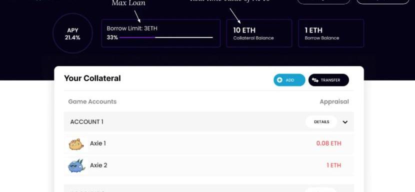 許多專注游戲領域的NFT玩家購買的NFT通常只能在游戲中使用。為了解決這個問題,MetaLend建立了一個平臺,讓NFT同樣可以被用作抵押品以產生增值收益。用戶能夠對他們的資產進行評估,并以NFTs為抵押品借入其價值30%的ETH。MetaLend的協議本質上是向尋求獲得利息的貸款人提供流動性。APY因借出的資產種類而異,并由流動性的利用率來設定,利用率越高,APY越高。