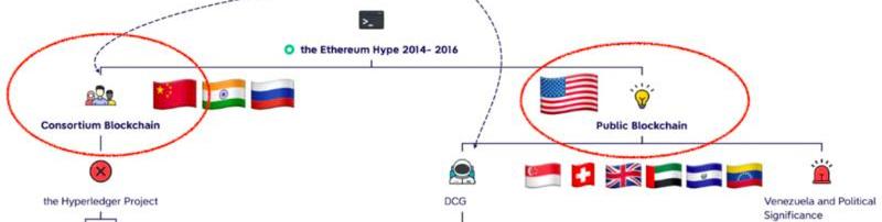 起初,美國和中國等國家都在努力鼓勵和探索聯盟鏈的使用案例,認為這是提高傳統行業效率的一種方式。然而,當中國還在堅持聯盟鏈的時候,Hyperledger項目已經逐漸瓦解,美國市場也明確轉向了前景廣闊的公有鏈。
