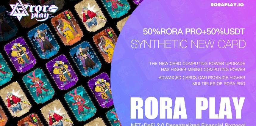 在NFT領域,RoraPlay推出極光PLAY投資計劃將直接空投RORANFT卡牌給白名單用戶,NFT卡牌具有一定的基礎算力,通過算力挖礦的方式獲得更多的RORAPRO。用戶通過提供50%RORAPRO+50%USDT合成更高等級的NFT卡牌。更高級的NFT卡牌將帶來更強的算力,更高的產出。