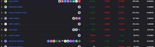 DeFi項目鎖定資產前十排名及鎖倉量數據來源:defillama