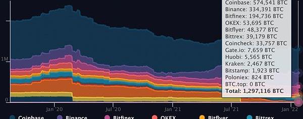 交易所錢包比特幣供應量