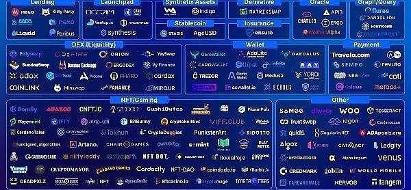 Cardano市值在公鏈排名中位居第四,僅次于BNB,略高于SOL,隨著Cardano智能合約上線后,它也將成為最具競爭力的去中心化生態之一。Cardano生態已經涵蓋了包括DEX、借貸、合成資產、去中心化保險、衍生品市場、基建等諸多板塊。