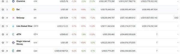DeFi項目鎖定資產前十排名及鎖倉量數據來源:defillama
