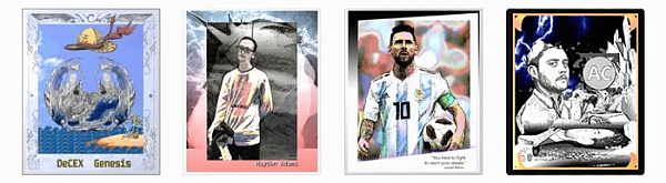 DeCEX的NFT藝術收藏品由美國的知名虛擬藝術設計師Zemm設計,他也是負責YFI 大姨夫的禮品藝術設計負責人。在創世卡中,DeCEX的圖像與兩個拿著水瓶的仙女的圖像交相輝映。海洋一直被認為是充滿生命力的地方,這是對DeCEX在項目啟動時頑強生命力的隱喻。除了創世卡以外,DeCEX還將推出風云人物系列和運動員系列(原始NFT是3D動態)。