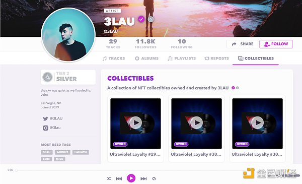 Audius會根據用戶$AUDIO的持有量,提供不同服務。擁有白銀賬戶的藝術家才可以使用Audius Collectibles,他們至少擁有100個$AUDIO。因此,在Audius上使用NFT的需求能夠轉變為對$AUDIO的需求,從而支持整個項目發展。