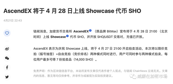 不過我今天倒是可以給大家分享一個打新的信息,Ascendex又有拍賣了: