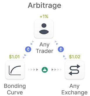 Uniswap PCV存款從聯合曲線接收存進來的ETH,將其作為流動性存入Uniswap的ETH/FEI池。與此存款對應的FEI被鑄造。和上述的早期聯合曲線直接鑄幣不同,PCV存款的鑄幣與Uniswap的現貨價格有關,并非聯合曲線決定的價格。此外,由于聯合曲線單方向的性質,即用戶只能通過曲線買入FEI而不能賣出。因而,當FEI在市場出現溢價,投資者或自動套利機器人可以通過聯合曲線買入并在二級市場賣出,既抹平了溢價,也同時給PCV注入了資金。