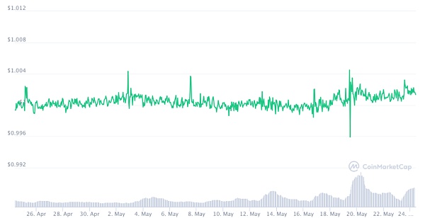 另外從 Maker 發行的美元穩定幣 DAI 的價格來看,比 Synthetix 的 sUSD 更穩定,波動率更低,價格能穩定保持在 1 美元左右的水平。