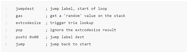 使用?EXTCODESIZE?(名義 Gas 消耗量是 700)消耗 1000 萬 gas