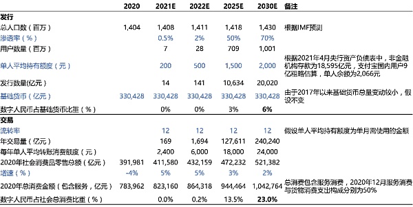 圖3:基準假設下數字人民幣發行與交易規模的學術測算