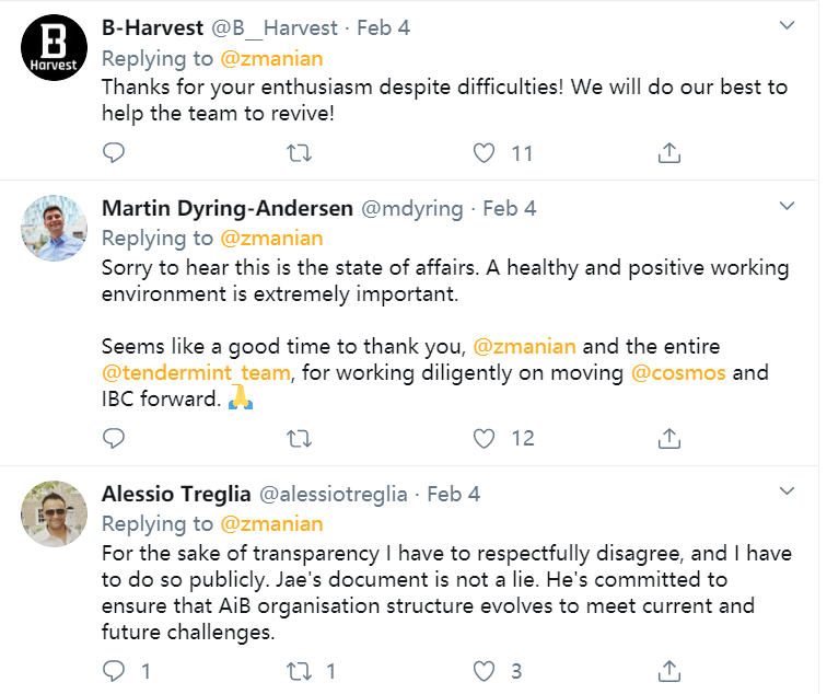 在此前,Manian一直在推進Cosmos系統內重要的IBC協議的開發工作。Manian在2月4日曾表示,即使他離開,也會推進IBC開發的工作。