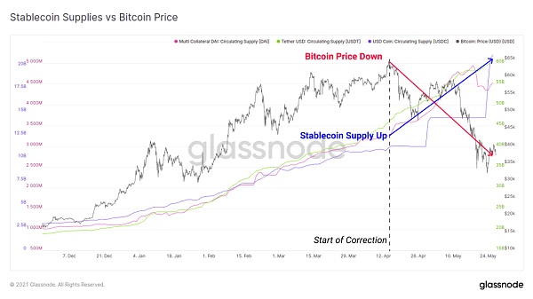 然而,在拋售的另一方面,穩定幣的流通供應量此后創下歷史新高。自 4 月 14 日開始價格修正以來,穩定幣供應量在過去 1.5 個月內增加了以下數量: