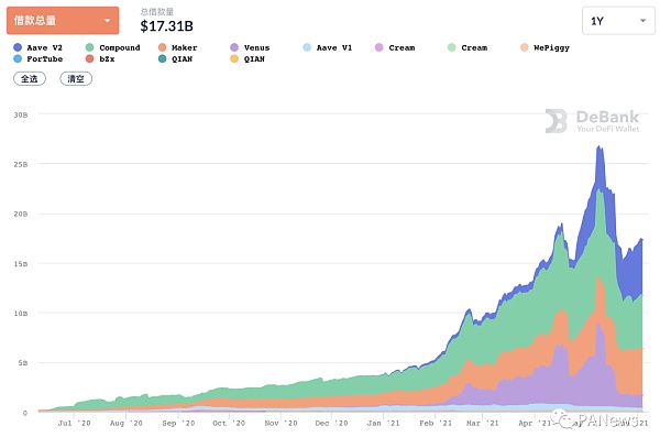 在調整結束之后,也有一些平臺重新崛起。5月底,Aave V2的總借款量達到了54億美元,超過Compound成為最大的去中心化借貸平臺。而一個月前,Aave V2的總借款量只有36億美元,Aave V1也只有4億美元。