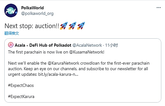 XRP/HKD-6.43%6月3日晚,PolkaWorld官方發推表示,Kusama網絡已正式上線第1條公益平行鏈statemine,并將在接下來啟用Karura網絡有史以來的第一次平行鏈拍賣眾籌。這對于整個波卡生態來說是又一個嶄新的里程碑。