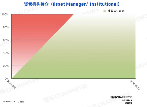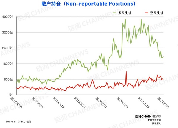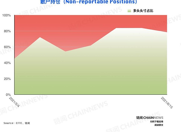 6 月 19 日,CFTC 公布了最新一期 CME 比特幣期貨周報(6 月 9 日-6 月 15 日),統計周期內比特幣取得了近 7000 美元的價格反彈,并在該統計周期末段重新站回到了 40000 整數關口上方,此前階段性的止跌演化成了一波幅度看似可觀的實際上漲,這種背景下市場上各類投資者的情緒會否有明顯的轉多跡象,是本期持倉周報的關鍵。而如若各類賬戶仍然能夠保持偏空的調倉或者持倉狀況的話,那么可以認為整體的偏空氛圍預計將在相當長的一段時間內保持下去。