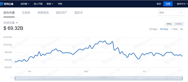 畢竟,盡管擁堵、高Gas費讓不少開發者和用戶頭疼不已,但以太坊生態當前的完整度和體量是任何公鏈項目都無法比擬的。歐科云鏈OKLink數據顯示,截至6月21日,以太坊上DeFi協議的TVL為693億美元,其中TVL排名第一的Curve鎖倉資金為81.7億美元。