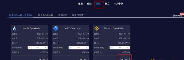 單個交易所所年化保費分紅42.65%,如果是選擇承保三個所,則保費分紅是三個所相加。但承保三個所各100U的保額合計300U,則只需要支付100U的承保資金。