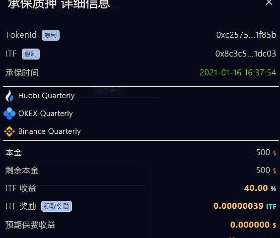 備注:?預言押金和ITF獎勵必須得最新保險產品結束之后才能領取
