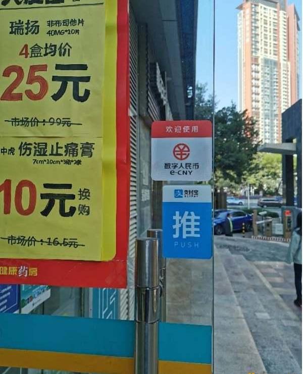 深圳福田區某藥店門口,貼有“數字人民幣”使用標識時代周報記者劉文杰攝