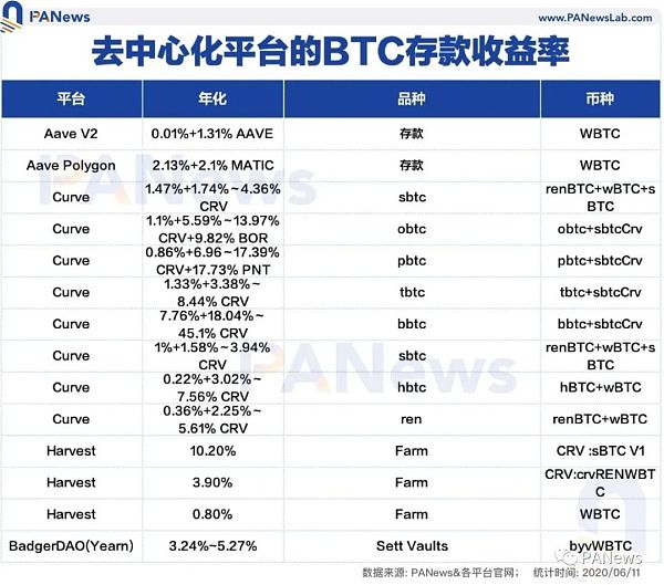 中心化與去中心化平臺中均有多種方法可以通過BTC獲取收益,但在中心化平臺或成熟的去中心化平臺中,BTC的存款收益只有1%左右。