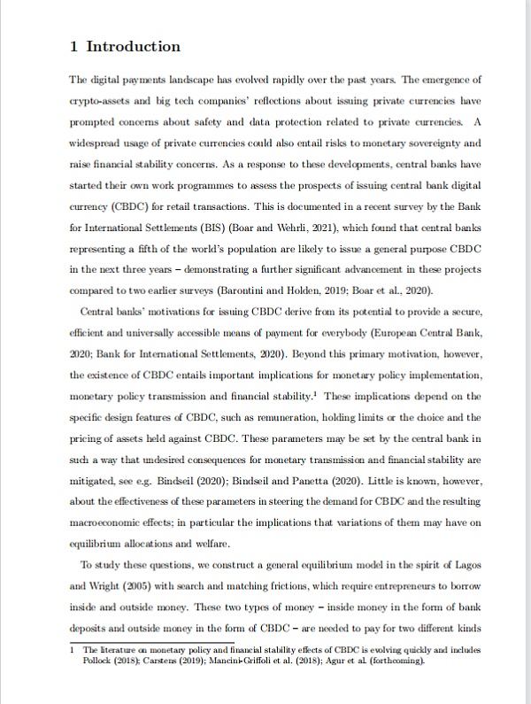 XRP/HKD-2.23%近些年,數字支付領域發展迅速,科技巨頭紛紛入局,引發了市場對數字貨幣的安全和數據保護的關注。數字貨幣的廣泛使用是否會對貨幣主權和經濟帶來影響?作為回應,各國央行啟動了各自的工作計劃,對中央銀行發行應用于零售的數字貨幣前景進行評估。本文在動態一般均衡模型下研究了中央銀行數字貨幣的宏觀經濟效應。中國人民大學金融科技研究所(微信ID:ruc_fintech)對其進行了編譯。