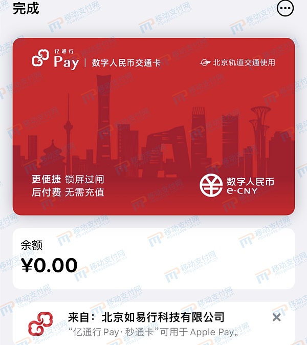 但是,它也有缺點。“億通行Pay?秒通卡”是由北京如易行科技有限公司(以下簡稱“如易行”)與蘋果共同開發的,而如易行作為北京地鐵的技術服務商,其僅僅支持在地鐵體系內的支付流通,因此“億通行Pay?秒通卡”僅支持北京軌道交通相關領域刷卡通行,而無法支持在公交等其它領域。