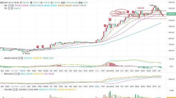 伊人評幣:1/10以太坊行情分析昨日凌晨給到大家一波以太短線空單策略已經拿下20個點,隨后以太多頭開始發力,再次破新高,目前價格最高在1335附近.