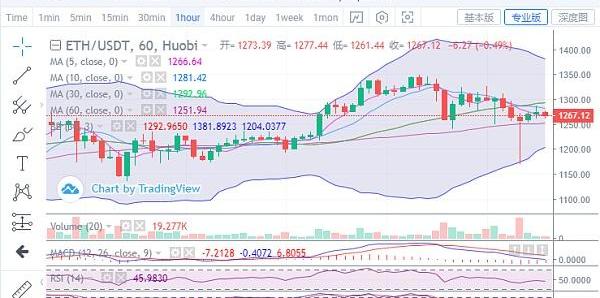 以太坊昨日行情延續新高之勢,價格上行打破重重阻力,高位臨近1350一線承壓走出回調。晚間行情反轉下行,價格跌破1300一線支撐,低位觸及1240位置情況才逐漸緩和。日內凌晨空頭再度發力,行情破位下行,跌勢進一步相信延續,昨日漲幅轉瞬即逝,低點觸及1170位置才迎來反彈,目前漲幅已有百余點。