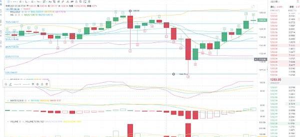 XRP/HKD+0.17%1小時圖看,布林帶雖然開口,但是目前在橫盤震蕩。不過區間還是比較大。對于我們來說還是很好操作的。圖片看出,以太在日內回調到1063后一路上揚,目前來到了1253的位置,并且大有突破昨日高點的強勢。而附圖可以看到MACD向上交叉形成金叉。所以走勢上面看好今晚大漲。?目前在1253位置??短線上面回調到1241附近多單進場?目標1265?止損3-5個點