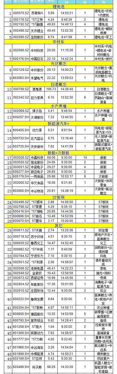 2、板塊今日漲停51支,比昨天少了12支,主要集中在白酒+鋰電池+光伏+新能源汽車