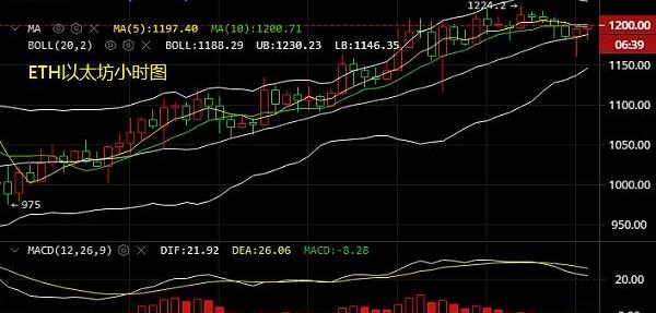 以太坊,牛市漲勢有多快,短線的回落也有多快,但整體不變的是多頭趨勢。以太坊在今日沖擊1224.2美元一線后轉而下行,歐盤一根插針向下更是加速了其下行跌勢至1160美元一帶,雖有反彈但是力度并不強勢,整體的話還是維持一個寬泛震蕩。小時線上看以太坊沖高回落盤整于BOLL中軌,BOLL呈縮口狀態,均線MA5/MA10粘合運行,短期內重點關注BOLL上軌于1230美元一帶阻力,下方則需關注BOLL下軌于1148美元一帶支撐情況。短周期KDJ技術指標緩和運行,附圖MACD綠色動能放量,短線伴有回調的跡象。不要被短線的回調所嚇倒,畢竟大趨勢還在牛市狀態,回調都是給你做多的機會,下方可在每一道關鍵支撐1180/1160/1140分批建倉,但也要懂得利潤的收割,切莫過度貪婪。