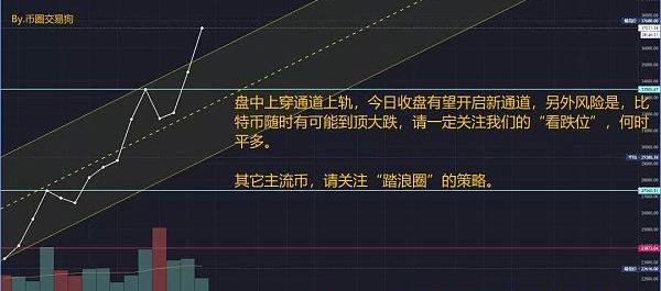昨日比特幣成功突破阻力位,今日盤中更是上穿通道上軌,如果今日收盤價仍位于阻力位上方,那么通道將重寫,但是,傾斜角度越大的趨勢通道,到頂的風險越高,何時到頂呢?