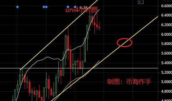 Uni是去中心交易所領域龍頭項目的代幣,項目質地是不錯的,近期漲幅較大,不建議追漲。4小時圖級別大致是個上漲通道,大概5.75附近有短期支撐。