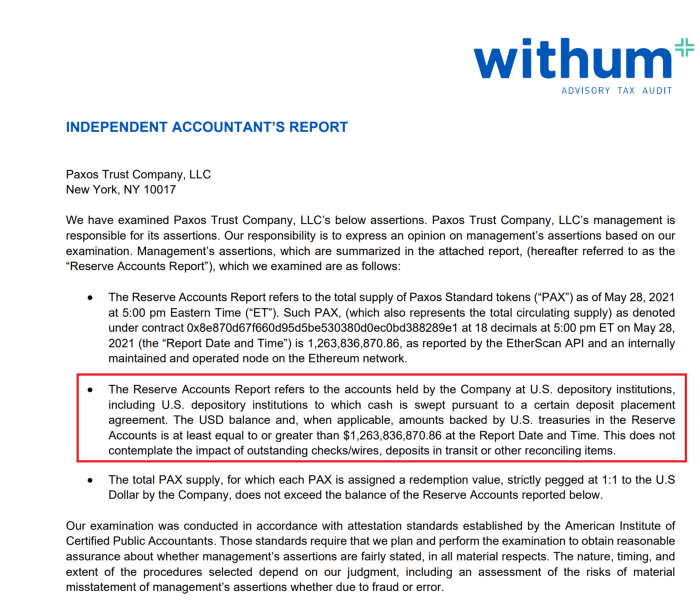Tether作為穩定幣的“老大哥”為Circle設定了一個非常低的門檻,合法的穩定幣將為交易者提供一個更安全的地方來存儲他們的資金。USDC承諾透明度和證明,并且他們多年來一直提供每月認證,但透明度卻沒那么高。而這也證明Circle的USDC無法抗拒Tether本身所暴露的誘惑,下圖是Circle的USDC平臺的首個可用證明: