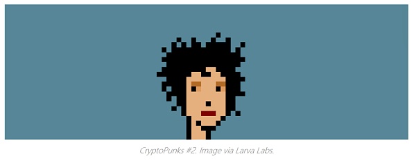下圖是CryptoPunk #2。她不僅是一個美女,也是有史以來的第三個CryptoPunk。她和其他8個CryptoPunks今年早些時候通過世界領先的拍賣行之一佳士得拍賣了1690萬美元。