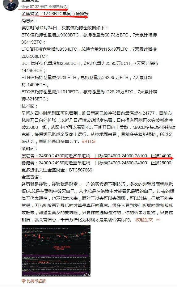 幣價處于24300-24400附近,多單進場目標看24500-24700-24900,止損24200