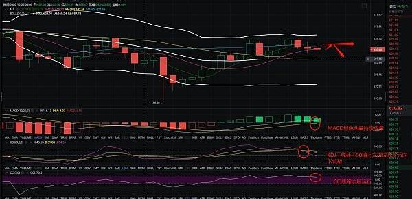 從4小時圖來看,目前價格625置附近波動,MACD綠色動量持續放量,KDJ三線目前處于50軸上方形成死叉后向下發散,CCII線常態區運行,由此可見短期走勢還是一個震蕩行情,操作上建議高空低多。策略每天全網公開,實盤操作,現價報單,簡單粗暴,時刻跟緊,及時抓空補倉,歷史現單可查