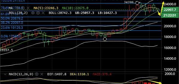 短期上方阻力位:23500/24000短期下方支撐位:22500/22000