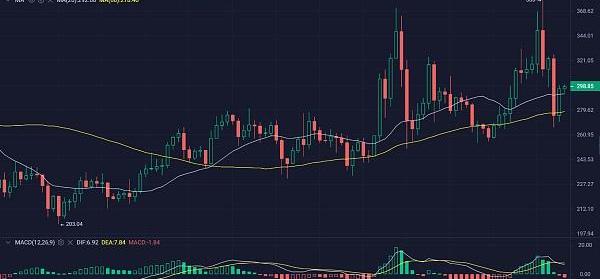 在BCH日線級別,多頭站上20日和60日均線,現階段重回多頭控盤的趨勢,回調做多,MACD出現死叉,紅色量柱逐步拉長,當前小級別空頭反攻,追高做多風險較大。