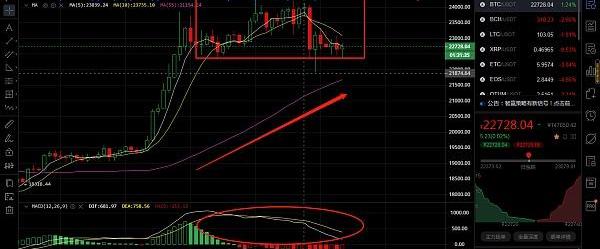 1小時圖類似,如果想要玩好合約或者短線的朋友我建議做趨勢單,看30分鐘級別以上的指標和k線形態,這樣不僅可以規避風險而且還可以省去很多交易手續費。
